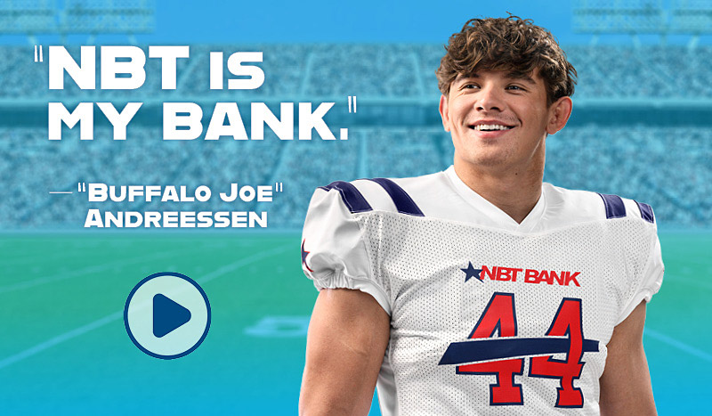 NBT is excited to team up with “Buffalo Joe” Andreessen. His commitment to excellence and strong local roots make him a perfect partner. Joe represents values we hold dear at NBT—teamwork, integrity, respect, and a positive attitude. For over a century, our Buffalo team has been here for our neighbors, delivering secure and dependable banking solutions to help you achieve everyday wins.